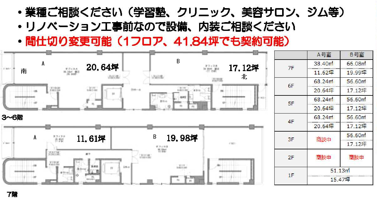 家賃保証加入要、業種相談、エレベーター、駅近、共用トイレ、給湯室、個別空調、、スケルトン、短期解約違約金あり、定期借家契約3年(更新可)